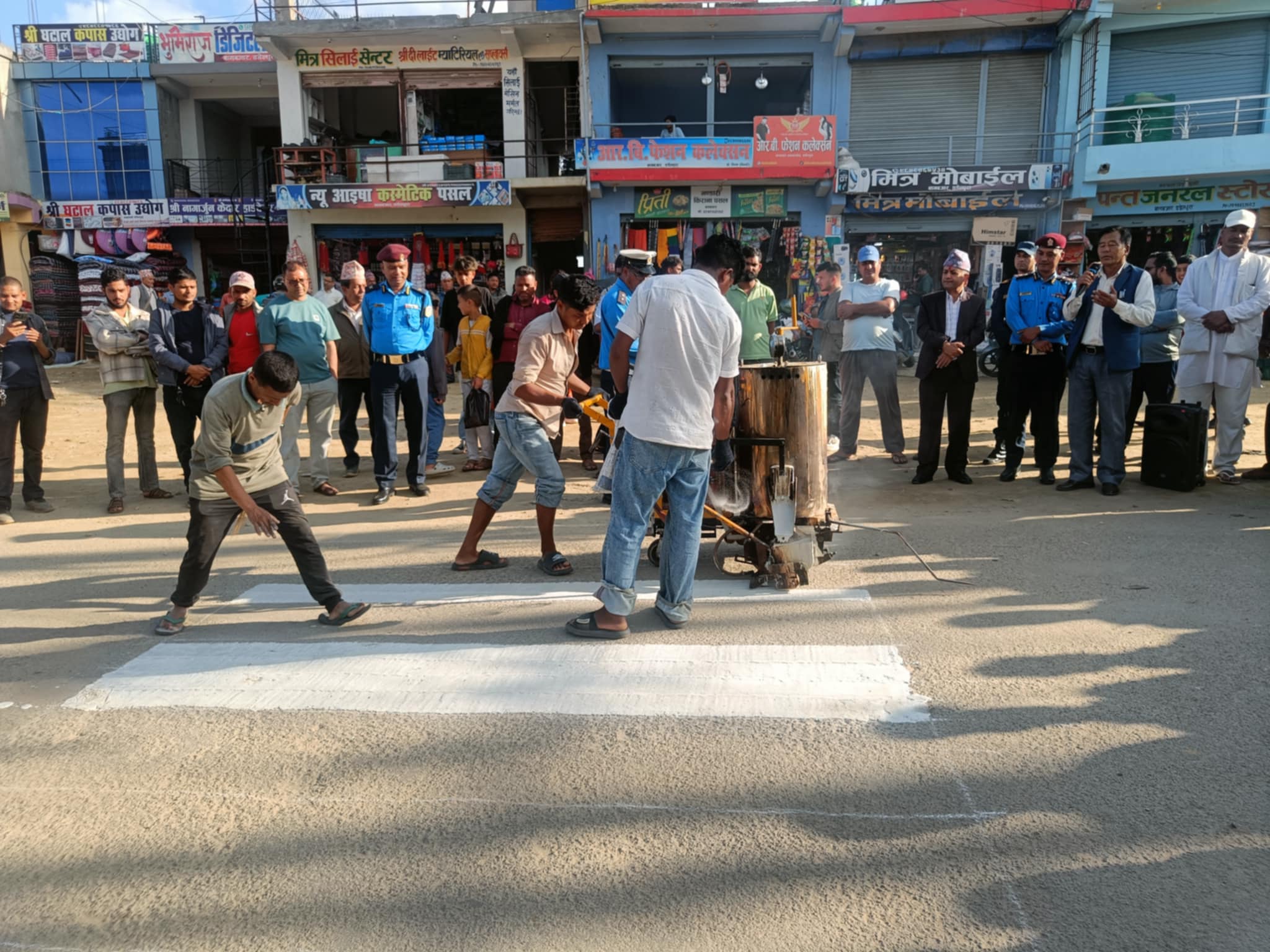 डडेल्धुरा बजारमा जेब्रा क्रसिङ निर्माण सम्पन्न, पैदल यात्रुको सुरक्षामा ट्राफिकको प्राथमिकता