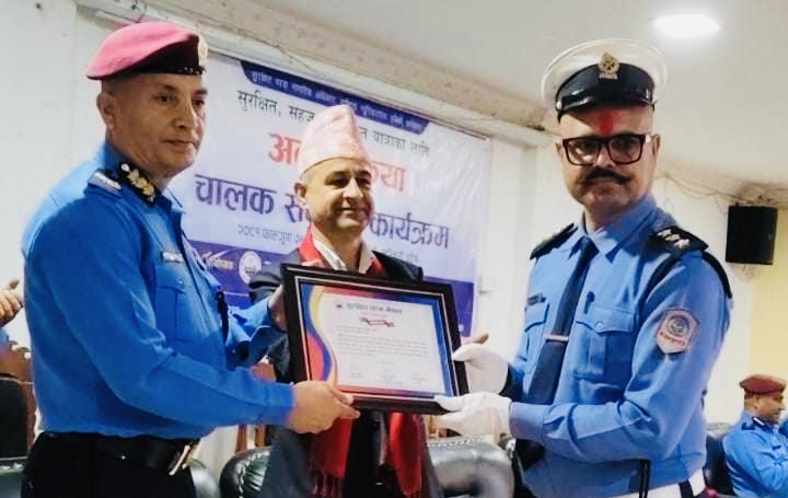 ट्राफिक व्यवस्थापनमा उत्कृष्टता प्रदर्शन गर्दै प्रहरी प्रविन आचार्य सम्मानित—