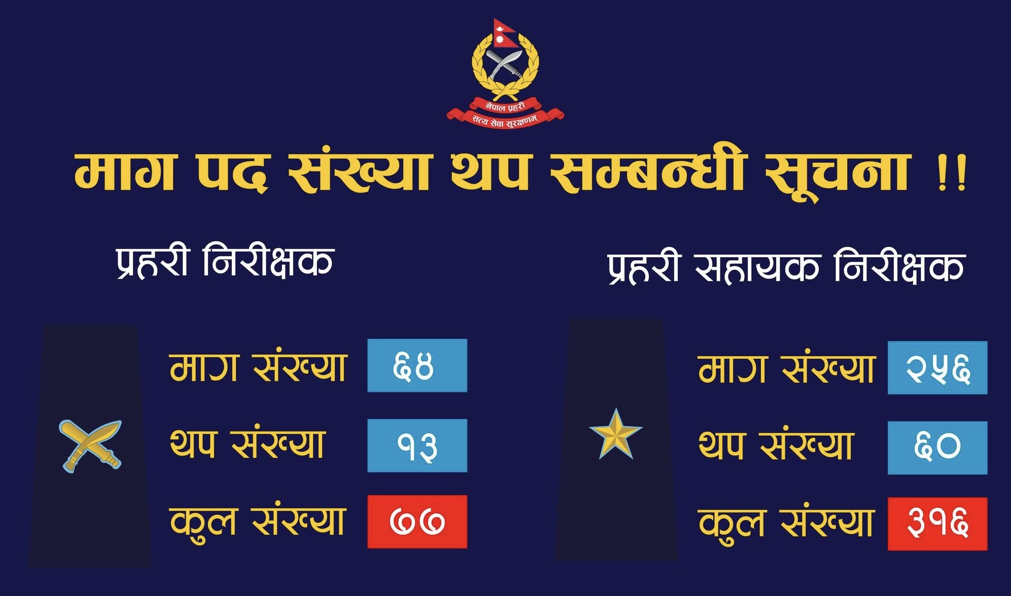 नेपाल प्रहरीले प्रहरी निरीक्षक र सहायक निरीक्षक पदका लागि आवेदन संख्या थप्यो—