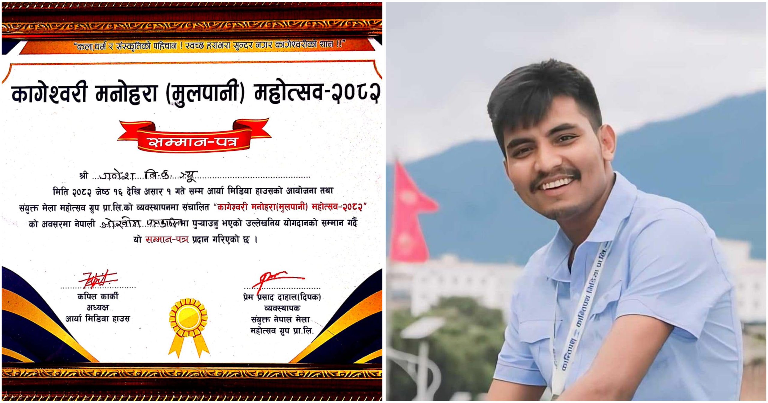 गीतकार तथा प्रहरी निरीक्षक भुपेन्द्र बुढाथोकीलाई “जुरी अवार्ड”