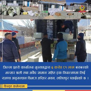 उक्त ट्रकलाई मुस्ताङको घरपझोङ गाउँपालिका-४ जोमसोमस्थित अन्नपूर्ण संरक्षण क्षेत्र चेक पोष्ट नजिक फेला पारी ट्रक चालक थापा, ट्रकधनी गुरुङ र सोही ट्रकमा रहेका टसी आया गुरुङलाई समेत सोधपुछ गर्दा शंका लागि उक्त ट्रकभित्र चेकजाँच गर्दा अन्दाजी ६ करोड ८१ लाख २० हजार ५१० रूपैयाँ बराबरको सामान भन्सार प्रज्ञापनपत्र र बिल बिजक बिनाका सामान फेला परेको डीएसपी बोगटीले बताए ।