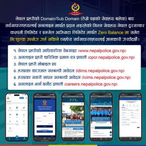 प्रहरी प्रधान कार्यालयले दिएको जानकारीअनुसार अब एनटीसी वा एनसेल प्रयोगकर्ताहरूले शून्य ब्यालेन्समै पनि प्रहरीको आधिकारिक वेबसाइट र उपडोमेनहरूमार्फत विभिन्न सेवा उपयोग गर्न सक्नेछन्।