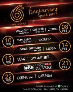 काठमाडौं ठमेलस्थित चर्चित नाइट क्लब एलओडी (लर्ड अफ द ड्रिंक्स) ले आफ्नो छैठौँ वार्षिकोत्सव ६ दिनसम्म विशेष कार्यक्रमसहित मनाउने भएको छ। क्लबले स्थापना भएको ६ वर्ष पूरा गरेको अवसरमा माघ २६, २८ र फागुन १, २, ८ र ९ गते विभिन्न राष्ट्रिय तथा अन्तर्राष्ट्रिय कलाकारहरूको प्रस्तुति रहने जनाएको छ।