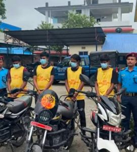 बिर्तामोड, झापा। बिर्तामोड क्षेत्रबाट मोटरसाइकल चोरीमा संलग्न समूहमाथि प्रहरीले सफल अपरेशन सञ्चालन गर्दै चार जनालाई मोटरसाइकलसहित पक्राउ गरेको छ।