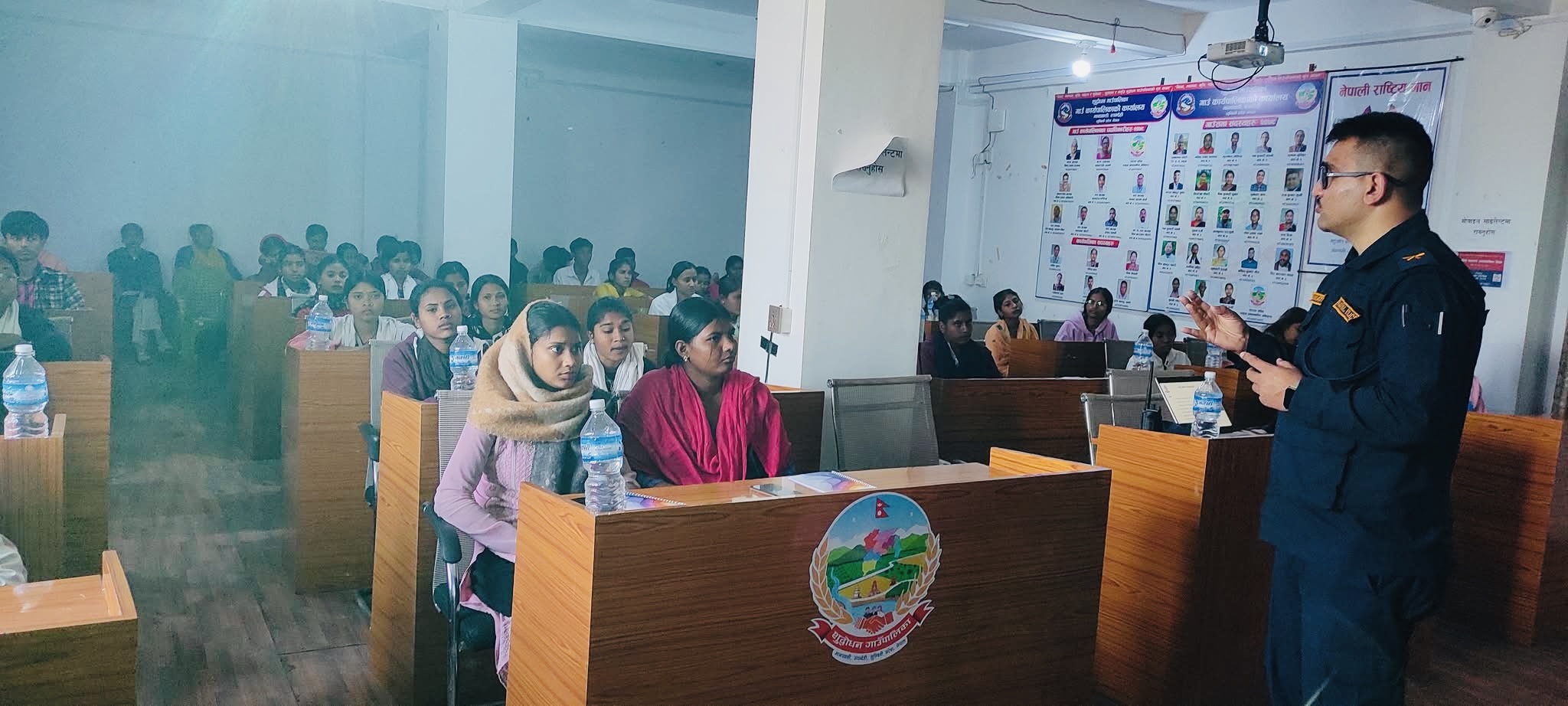 समुदाय–प्रहरी साझेदारी कार्यक्रम अन्तर्गत प्रहरी निरीक्षक अनिश बुढाथोकीले सहभागीहरूलाई लागुऔषधको जोखिम, नियन्त्रण र रोकथामबारे प्रशिक्षण दिएका थिए।