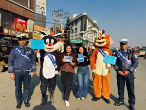 काठमाडौँ — ट्राफिक सप्ताह–२०८२ को अवसरमा काठमाडौँ उपत्यका ट्राफिक प्रहरी कार्यालय मातहत ट्राफिक प्रहरी वृत्त, नयाँ बसपार्कद्वारा सवारी दुर्घटना न्यूनीकरणलाई लक्षित गरी मस्कटसहित सचेतनामूलक कार्यक्रम सम्पन्न गरिएको छ।