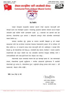 काठमाडौं — पत्रकार दिलभूषण पाठकविरुद्ध समाचार प्रसारणको आधारमा पक्राउ पुर्जी जारी गरिएको घटना र नेपालखबर तथा बिजमाण्डु डटकममा प्रकाशित समाचार हटाउन सरकारद्वारा दिइएको आदेशप्रति नेकपा (माओवादी केन्द्र) ले गम्भीर आपत्ति जनाएको छ।