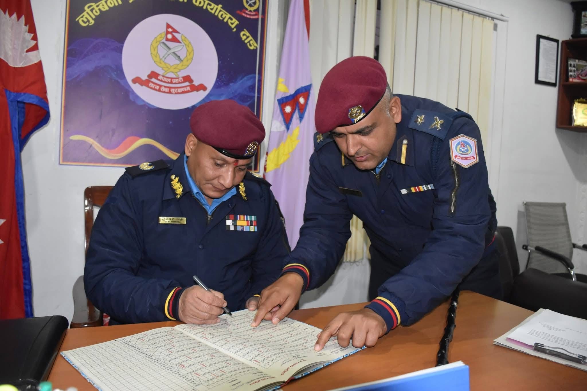 लुम्बिनी- लुम्बिनी प्रदेश प्रहरी कार्यालय दाङका प्रमुख डिआईजी भुपेन्द्र बहादुर खत्रीले निरीक्षण भ्रमणको क्रममा प्युठान जिल्ला पुगेर जिल्ला प्रहरी कार्यालय तथा मातहतका इकाइहरूको निरीक्षण गर्नुका साथै कार्यरत प्रहरी कर्मचारीलाई आवश्यक निर्देशन दिनुभएको छ।