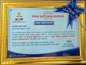 काठमाडौँजिल्ला प्रहरी कार्यालय सर्लाहीमा कार्यरत प्रहरी नायब निरीक्षक सुभाष यादवउत्कृष्ट अनुसन्धानकर्ताप्रहरीको रुपमा पुरस्कृत भएका छन्