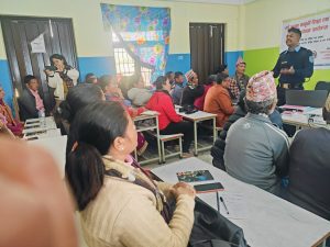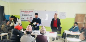बेलकोटगढी नगरपालिका स्थित सबै वडामा आम नागरिकलाई कानूनी शिक्षा तथान्यायिक कुरामा सुसूचित बनाउने उदेश्यले संचालित ६ दिने प्रशिक्षण कार्यक्रममा प्रशिक्षकको रुपमा खटिई“आत्महत्या रोकथाम र न्यूनीकरणका उपायहरू” सम्बन्धमा साथै सकारात्मक सोचको विकास कसरी गर्ने? सवालमा प्रशिक्षण प्रदान गर्नुहुँदै जिल्ला प्रहरी कार्यालय नुवाकोटबाट खटिएका प्रहरी सहायक निरीक्षक राजेश के.सी. साथैउक्त कार्यक्रममा स्थानियहरुको उल्लेखनीय सहभागिता रहेको थियो ।
